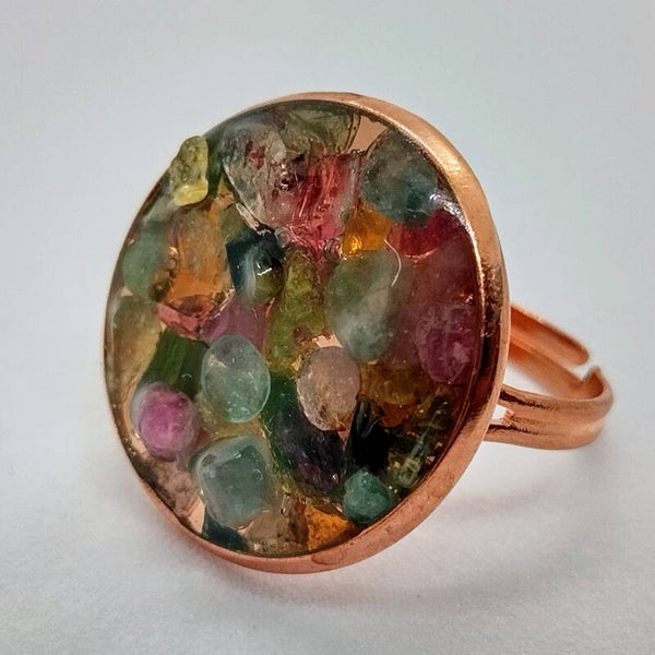 Kleurrijke roségoud kleurige ring met Toermalijn natuursteen.