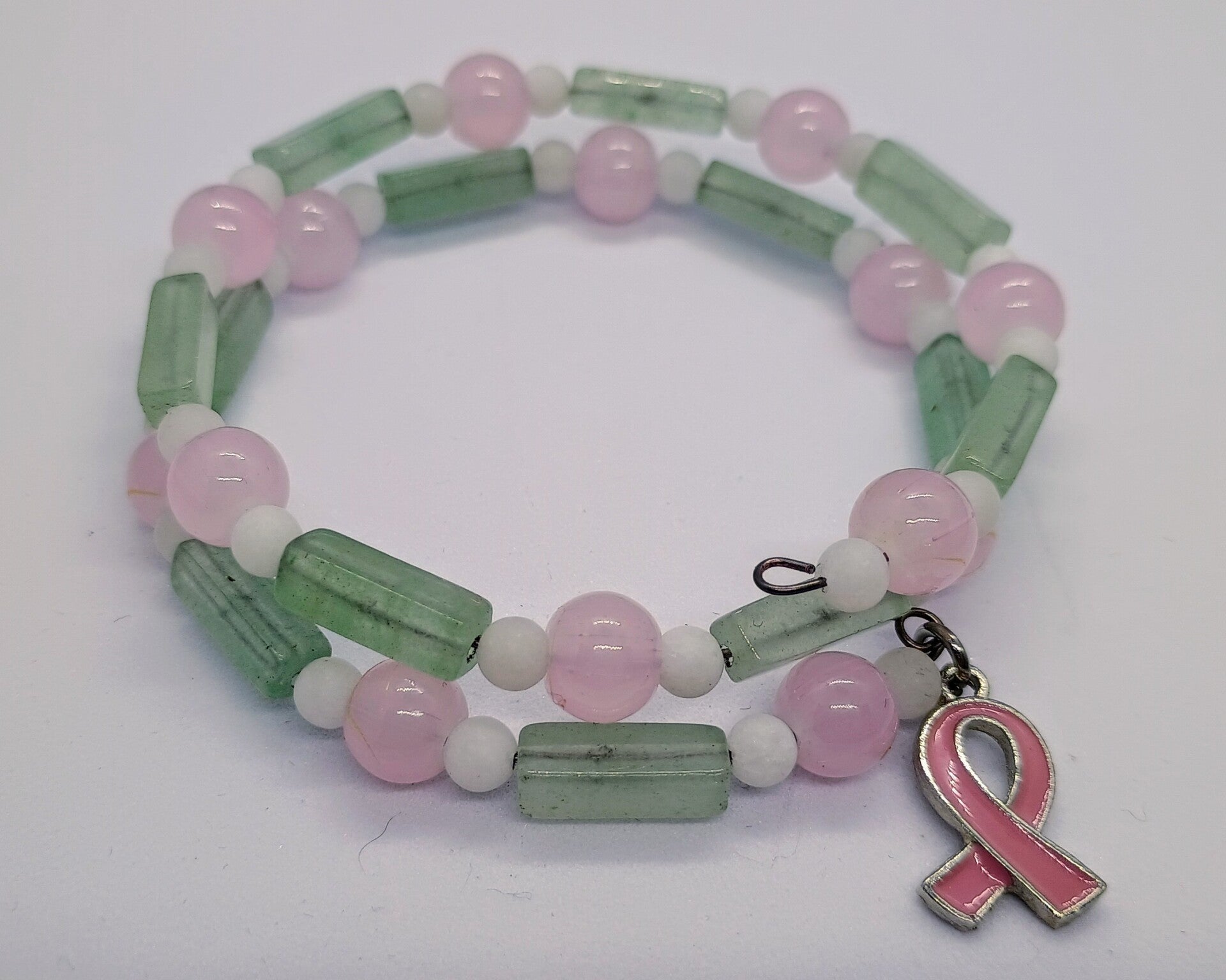 Licht groene Aventurijn natuursteen in combinatie met lichtroze en witte kralen.