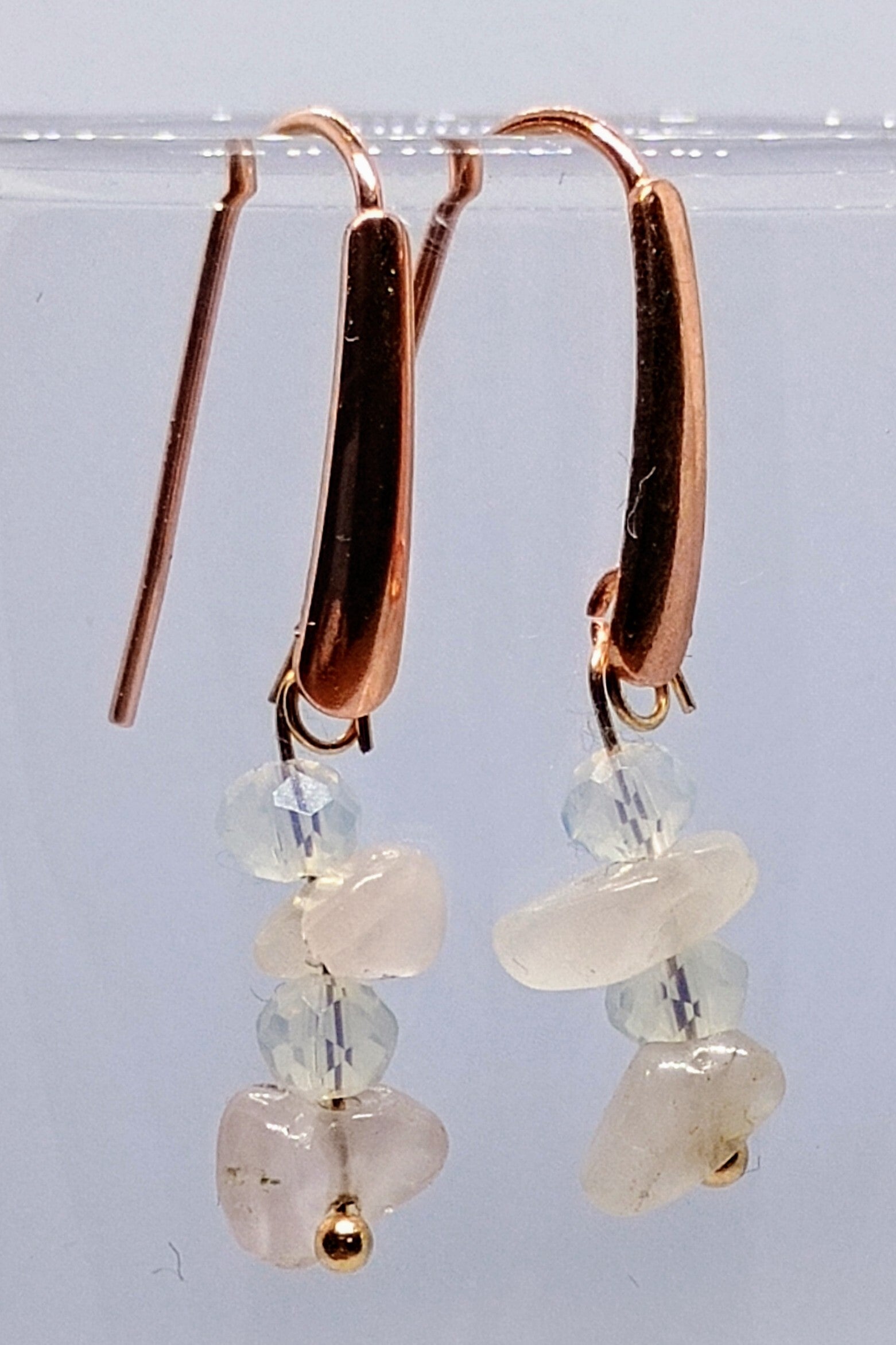 Rozenkwarts natuursteen gecombineerd met doorzichtige facetkralen aan een stijlvol roségouden frame.